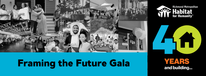 Join us for an exciting and rare opportunity to sponsor a gala event for Richmond Metropolitan Habitat for Humanity to celebrate our 40th anniversary at the Altria Theater! Our Framing the Future Gala will feature a silent auction, dinner for 250+ attendees, inspiring mission moments, and more. All funds raised will help build and repair homes for local individuals and families through Richmond Habitat's programs.